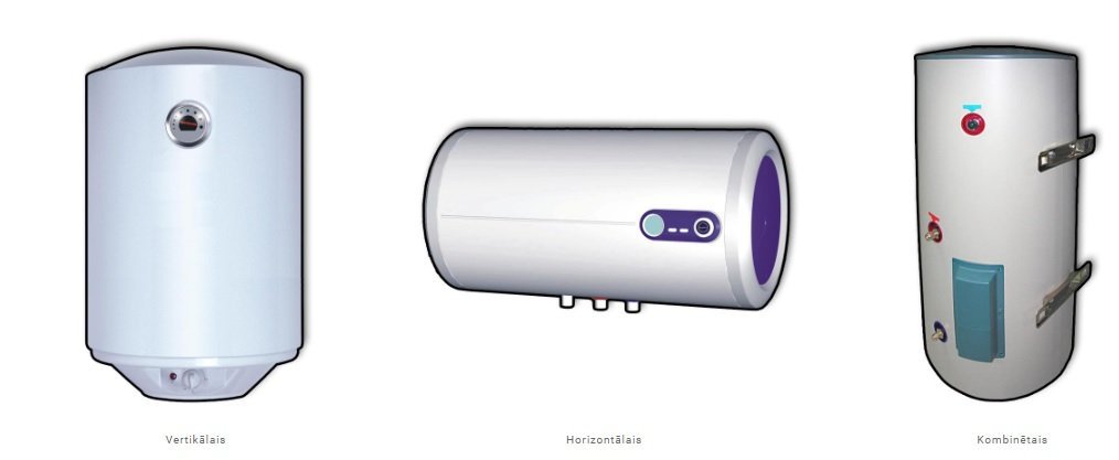 Ir nopērkami trīs veidu elektriskie ūdens sildītāji – vertikālie, horizontālie un kombinētie.